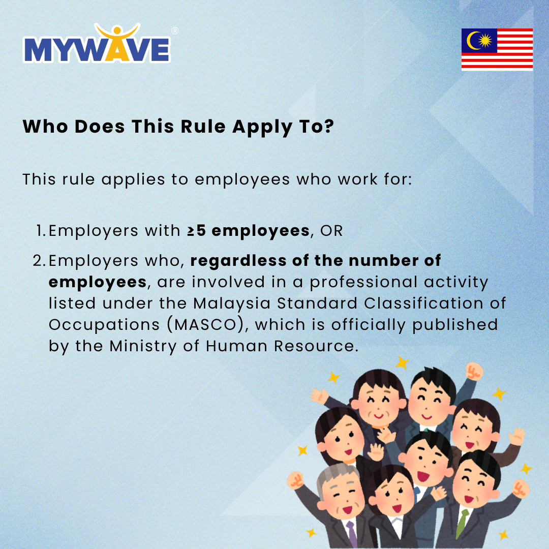 1 February 2025: Applicable to companies with five or more employees and professional activity-based employers under MASCO. (employers mentioned in point 1 and 2)
